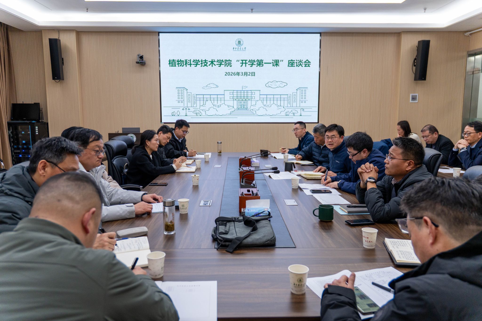 3月2日下午,我院2025-2026学年第二学期“开学第一课”听课座谈会在第三综合楼B308会议室顺利召开。学校办公室主任漆勇政、人力资源部部长朱正宁、离退休工作部党委书记鲁满新等职能部门听课人员、学院领导班子成员及任课教师代表等20余人应邀参会。会议由学院党委书记周雄主持。