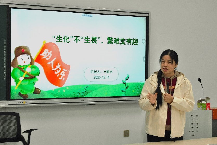 最后,丰胜求表示,让生化学习变有趣需借助外驱力(引导、奖励、惩罚)推动,最终转化为学生内驱力(自主感、胜任感、归属感)。她愿以自身作为外驱力引导者,助力学生找到生化学习内在动力,告别“畏难症”。