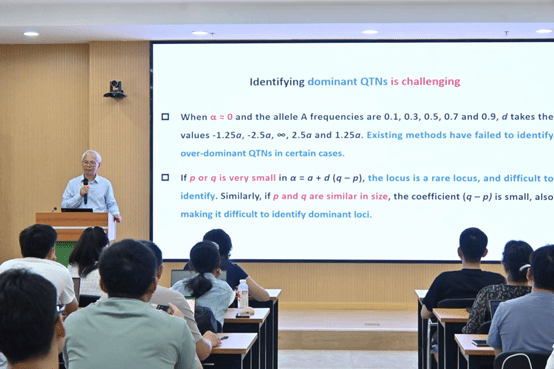 21日上午,学院统计基因组学研究团队章元明教授在开班仪式上作“关联分析混合模型方法的产生、现状、问题和新方法”的专题报告,系统梳理关联分析混合模型方法的发展历程、当下所面临的挑战和解决方案、团队成果以及应用案例。他谈到,面临大数据和AI时代下的挑战,团队创新性地提出了“压缩方差组分混合线性模型”和“全基因组扫描+机器学习”的新框架,有效地突破了传统方法在遗传位点检测中的“视野盲区”。同时,融合多项先进统计与计算机算法技术,显著降低了关联分析对高端芯片的依赖,成功化解了遗传分析中的“算力壁垒”和“卡脖子”难题。该系列方法不仅能够充分挖掘大数据中潜藏的遗传信息,还使得大规模关联分析实现了“低成本、高效率”的目标。