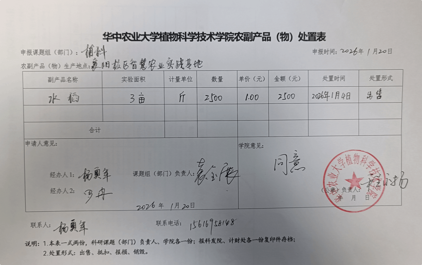 按照《华中农业大学科研副产品(物)管理办法》(校发〔2023〕130号),现对学院科研副产品(物)处置情况公示。