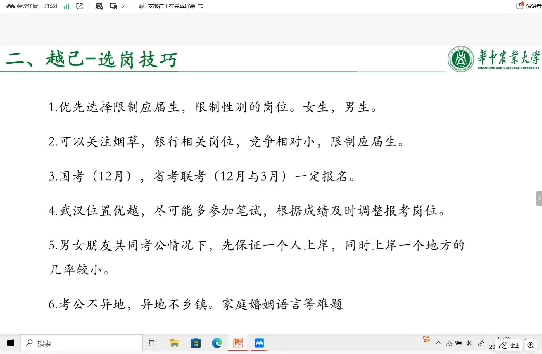 10月25日下午14:30,学院线上举办选调政策解读分享会,本研共计60余名同学参与。