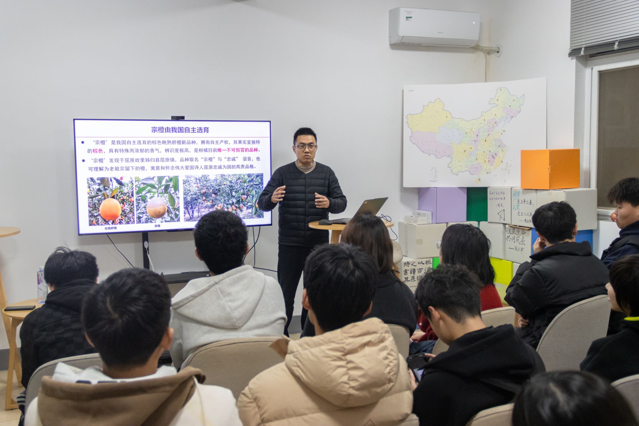朱凯杰以自身研究“宗橙”的科研经历为切入点,通过生动的案例阐述了柑橘团队在自主选育新品种过程中的探索历程。他结合具体研究数据,清晰呈现我国柑橘种质资源的开发利用现状,勉励在场学子加入柑橘种质研究领域,为优质果树品种的培育贡献专业力量。