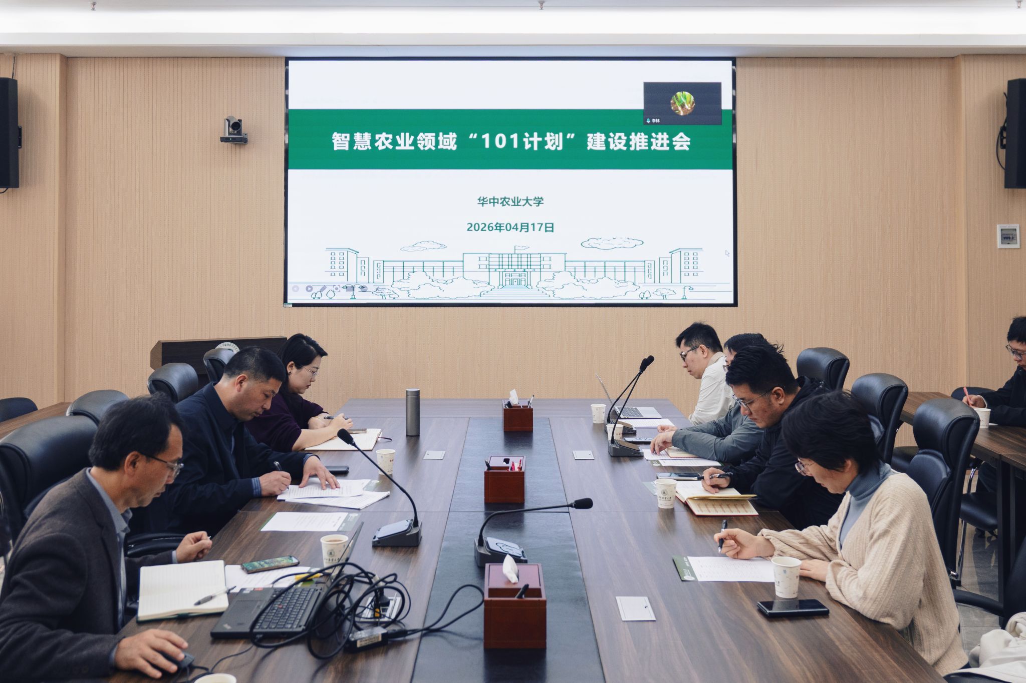 4月17日上午,智慧农业领域“101计划”建设推进会在华中农业大学第三综合楼B308会议室召开,全国12所高校的课程与教材主编和技术支撑团队通过线上线下相结合的方式参会本次会议。会议由华中农业大学植物科学技术学院副院长李林主持。