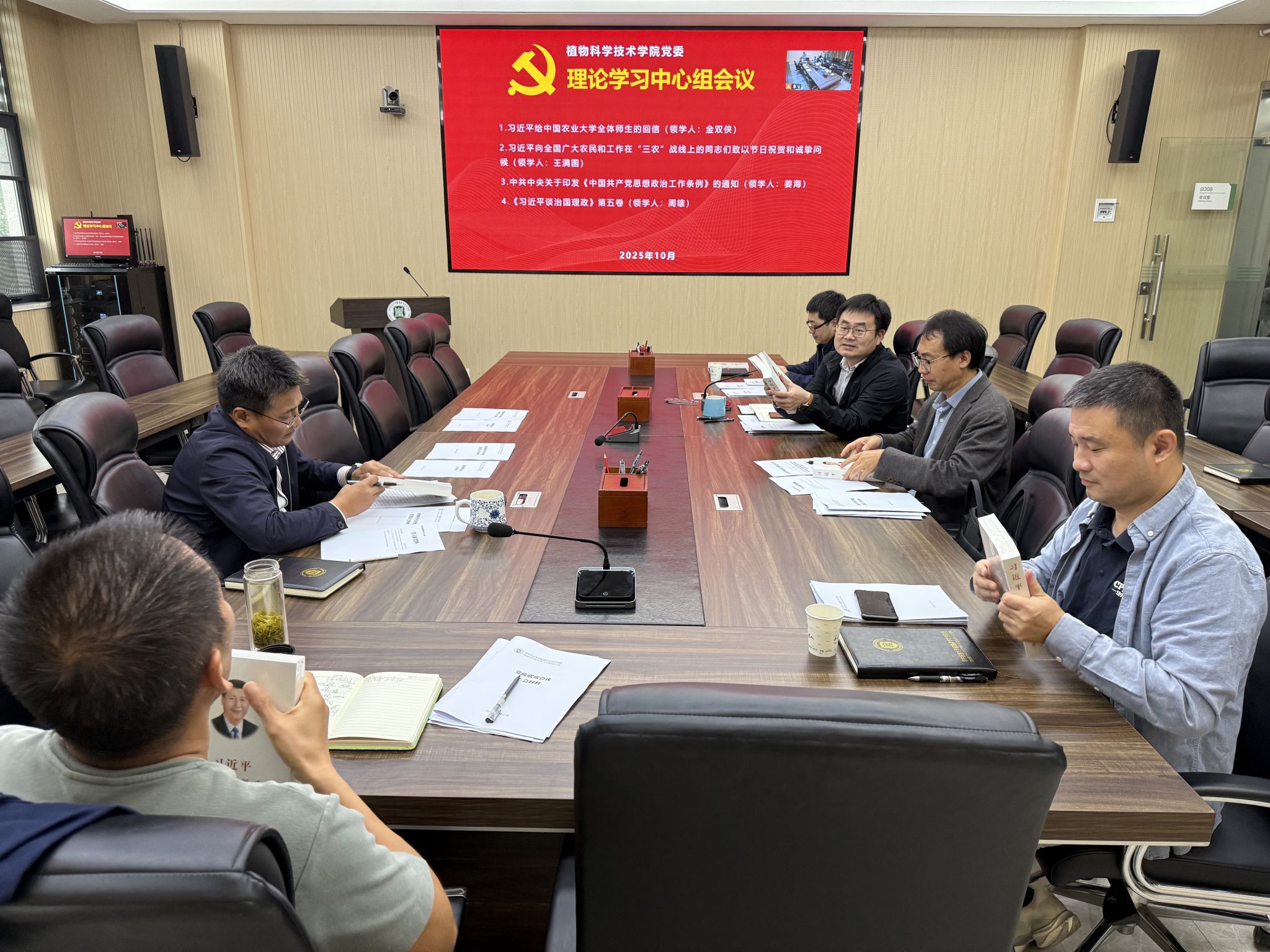 10月17日,植物科学技术学院党委理论学习中心组开展2025年第7次集中学习,学院党委理论学习中心组成员参加学习,会议由学院党委书记周雄主持。